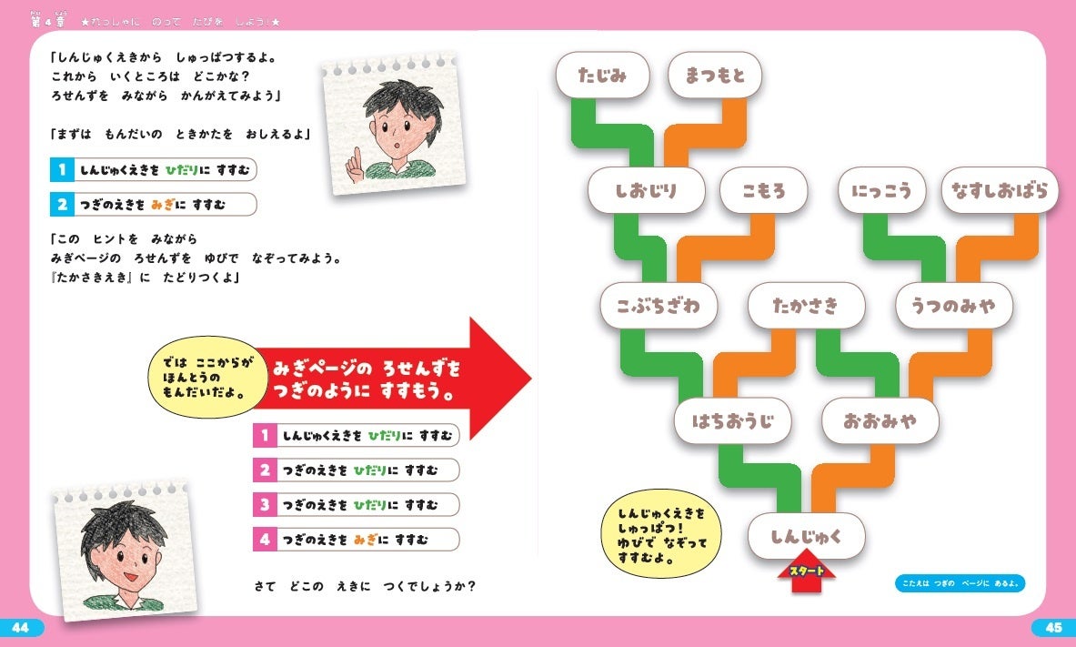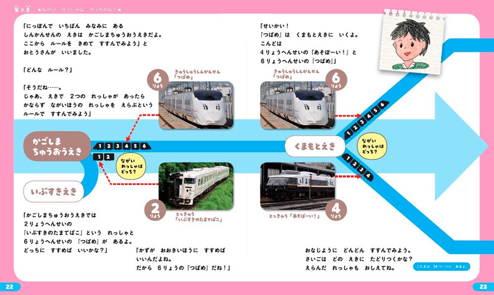 列車旅の物語を読みながら、途中に出てくる問題を通して、「プログラミング的思考」を身につけます。